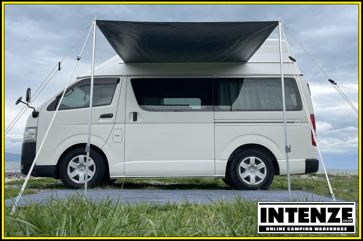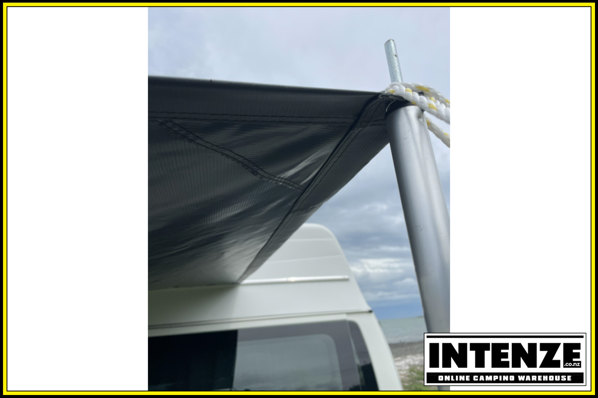 Just perfect for creating an extra sheltered area on the side of your Caravan or Motorhome. Simply slide the Awning rope through the Awning rail / channel on the side of your Caravan or Motorhome. Erect a couple of pole’s then peg out the guy ropes and your good to go ( Poles and Pegs not included )